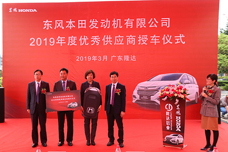 东风本田发动机有限公司党委书记周永春、采购销售部长程家斌对广东隆达进行本田奥德赛授予仪式。