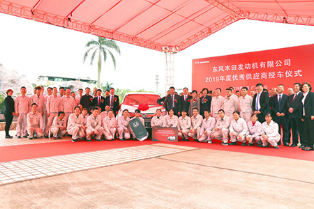 2019年3月25日,东风本田发动机有限公司2018年度优秀供应商授车仪式在广东隆达隆重举行。这是广东隆达自2014年后时隔4年再次获此殊荣。东风本田发动机有限公司党委书记周永春、采购销售部长程家斌、采购管理课长陈怡青、采购担当白云、隆达铝业总裁杜永立、副总裁郭军辉、广东隆达总经理叶艳平、隆达丽山总经理汪东山等领导出席。广东隆达全体员工也在现场共同见证这一荣耀时刻。